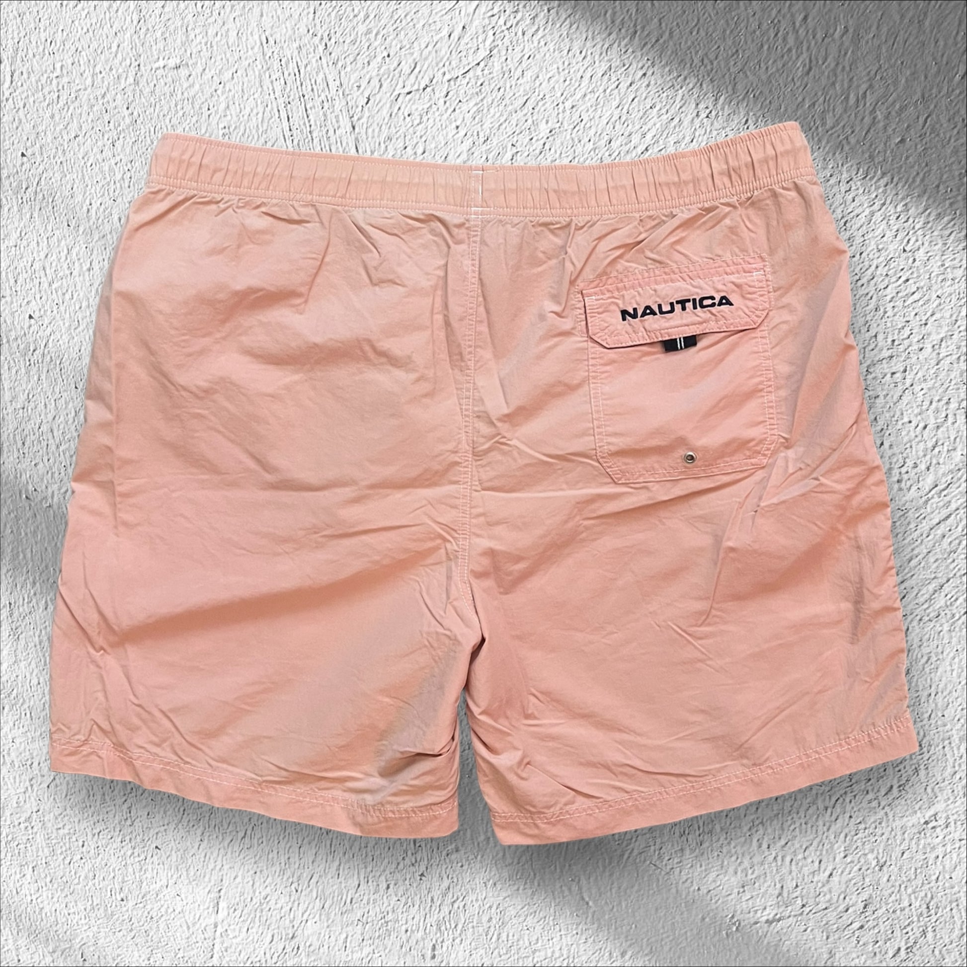 A bold pop of color with unmistakable summer energy, these Nautica pink nylon swim trunks bring a clean, classic look with that signature 90s/2000s Nautica vibe. Lightweight, fast-drying, and super comfortable, they’re perfect for beach days, pool sessions, or styling casually with a tee. The nylon fabric gives them a crisp structure, while the vibrant pink makes them stand out without trying too hard. A great piece for anyone looking to add some color and vintage edge to their warm-weather rotation.