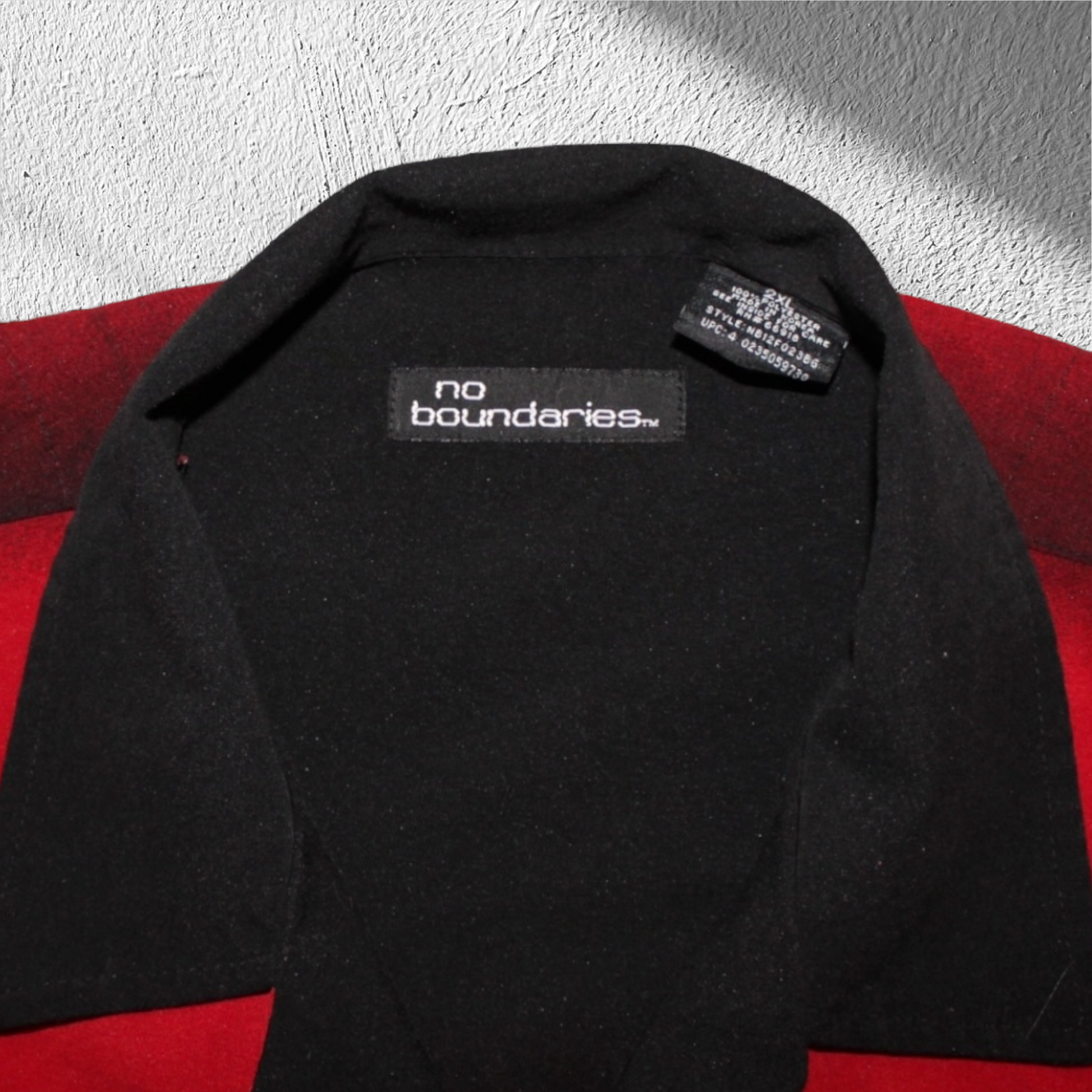Vintage Harley Davidson No Boundaries motorcycle button-up shirt, size 2XL. Classic biker style with bold graphics, perfect for Harley riders, motorcycle fans, and vintage streetwear collectors.