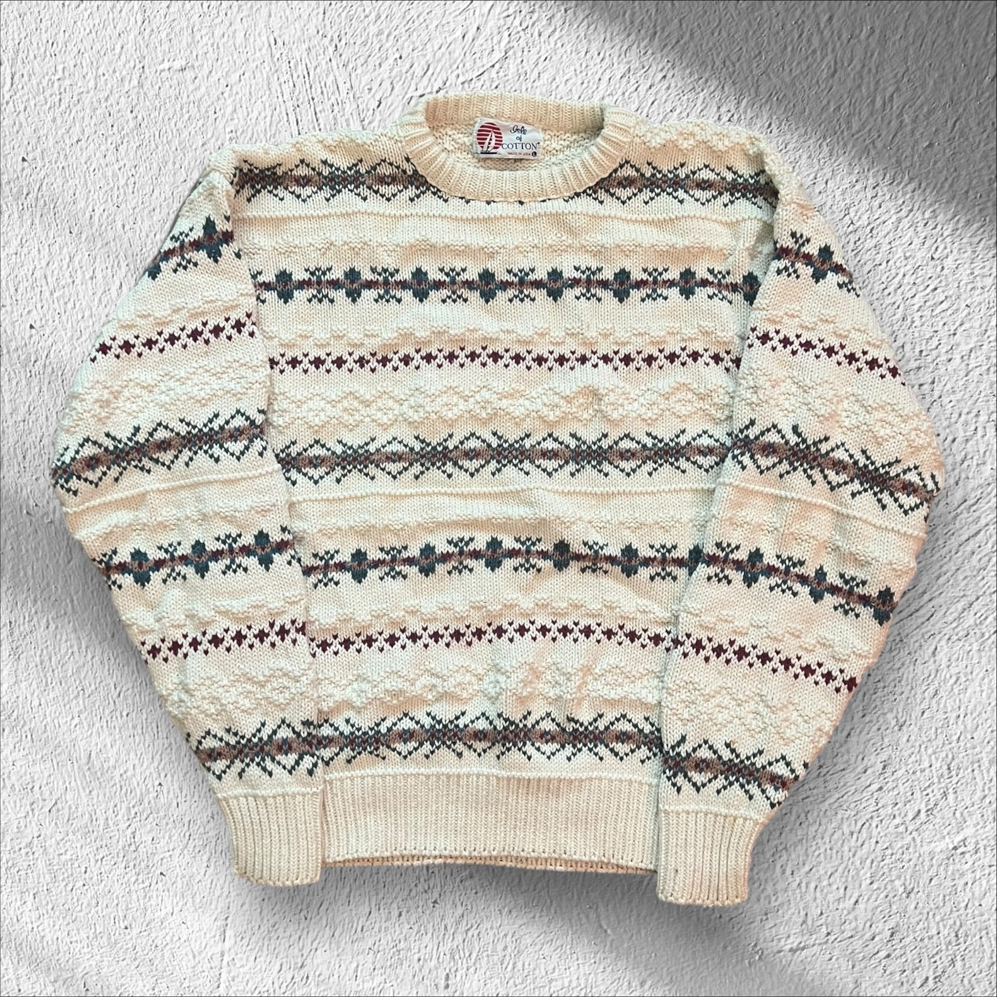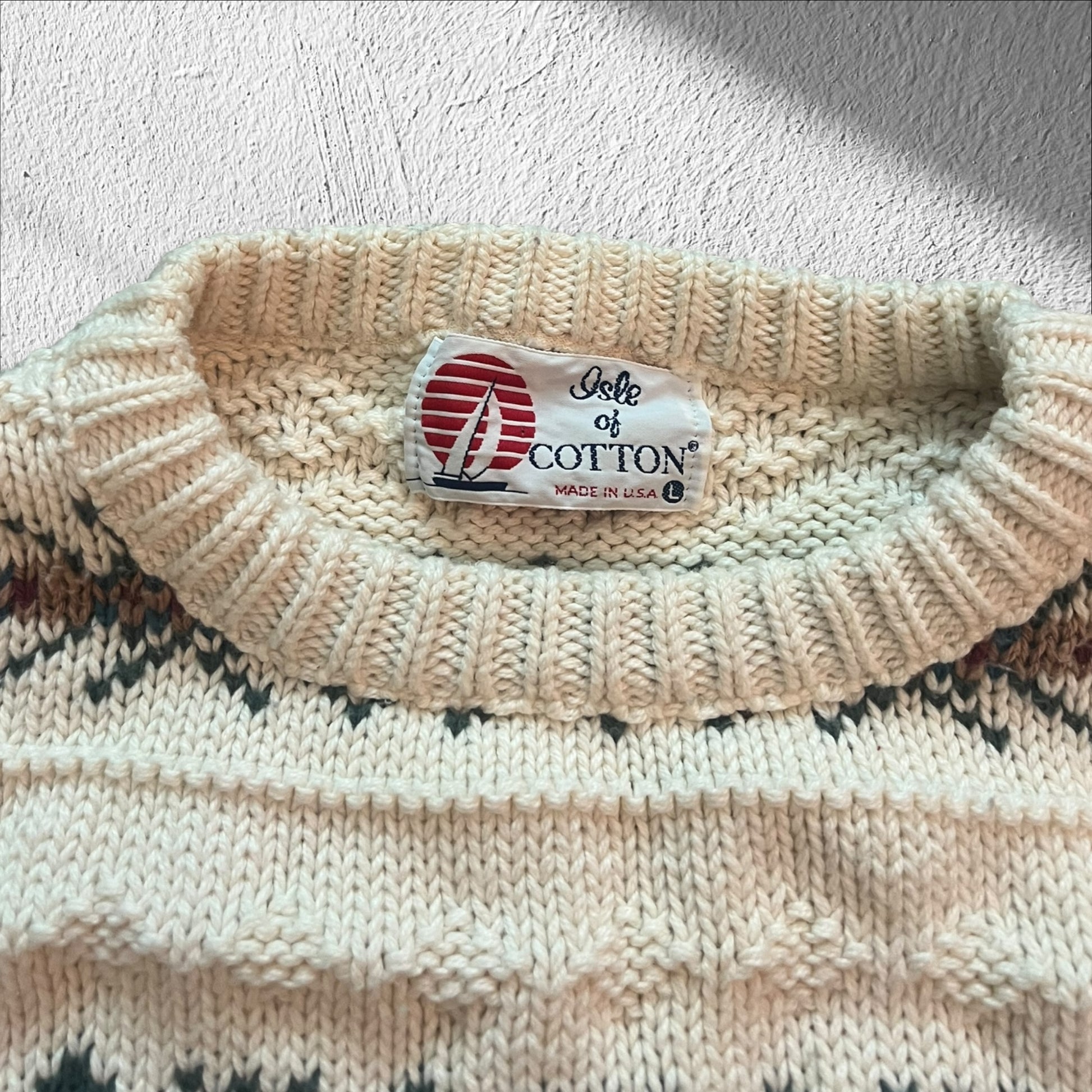 Vintage 90s Fair Isle Isle of Cotton Striped Knit Sweater – USA Made