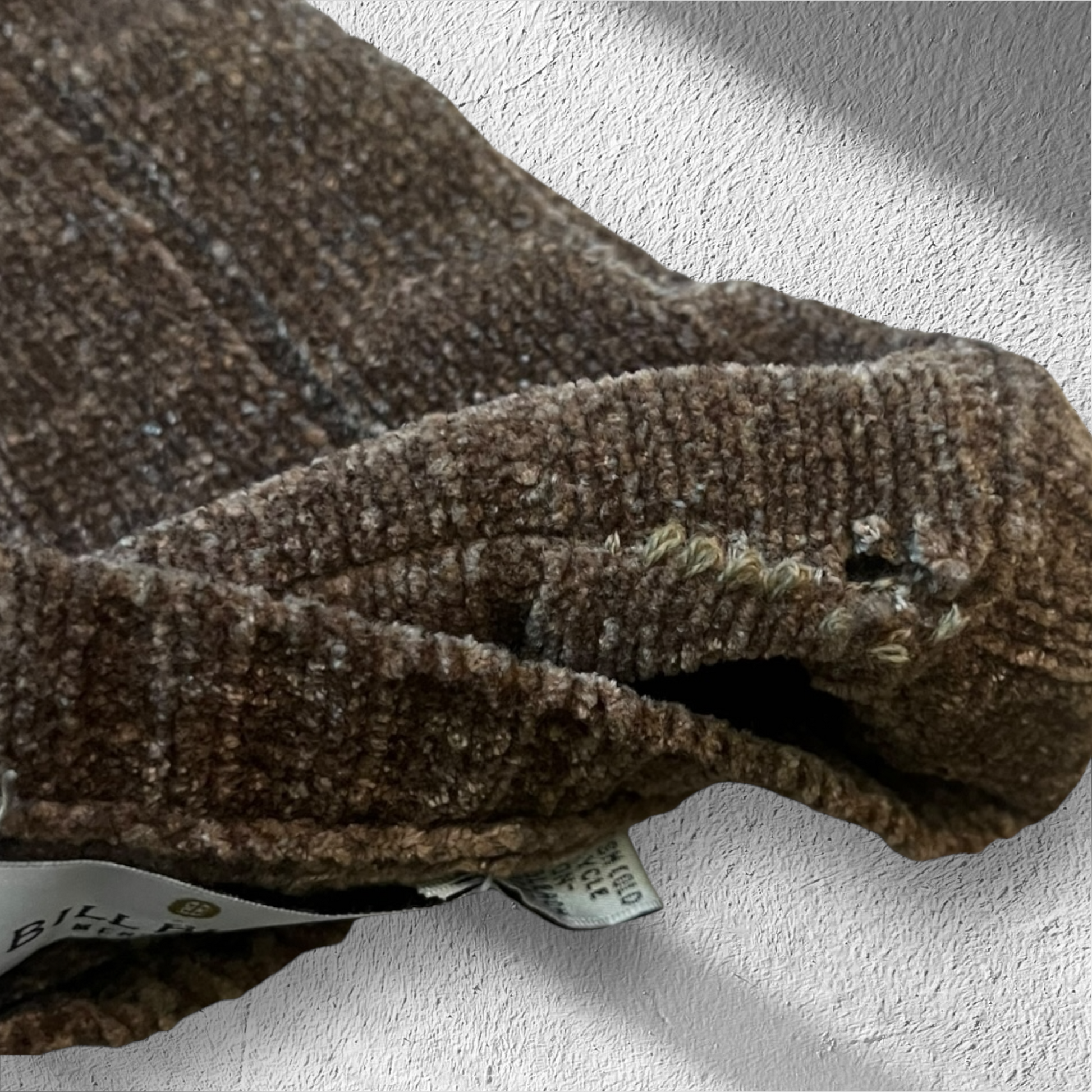 Classic vintage ribbed knit sweater from Bill Blass in a rich brown tone. This men’s XL pullover features a timeless textured design perfect for fall layering or a refined casual look. Quality vintage construction and a warm, comfortable fit make this a standout piece despite a small repairable flaw.
