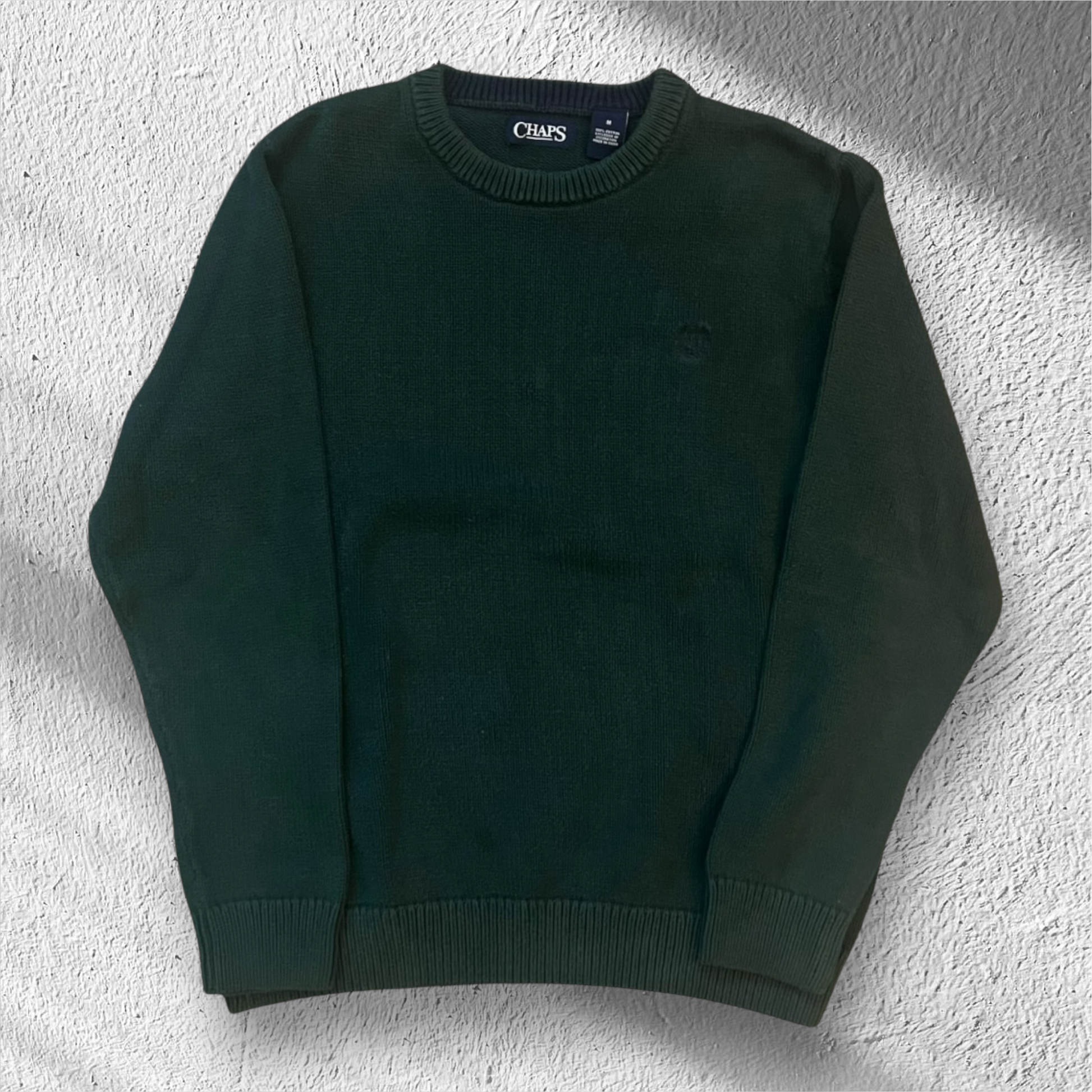 Classic vintage Chaps Ralph Lauren cotton knit sweater in a rich green tone. Timeless preppy style with quality craftsmanship and soft 100% cotton construction. Perfect for layering through cooler months or adding a vintage touch to your casual rotation. Clean, well-preserved piece with no flaws — a great staple for any Ralph Lauren collector.