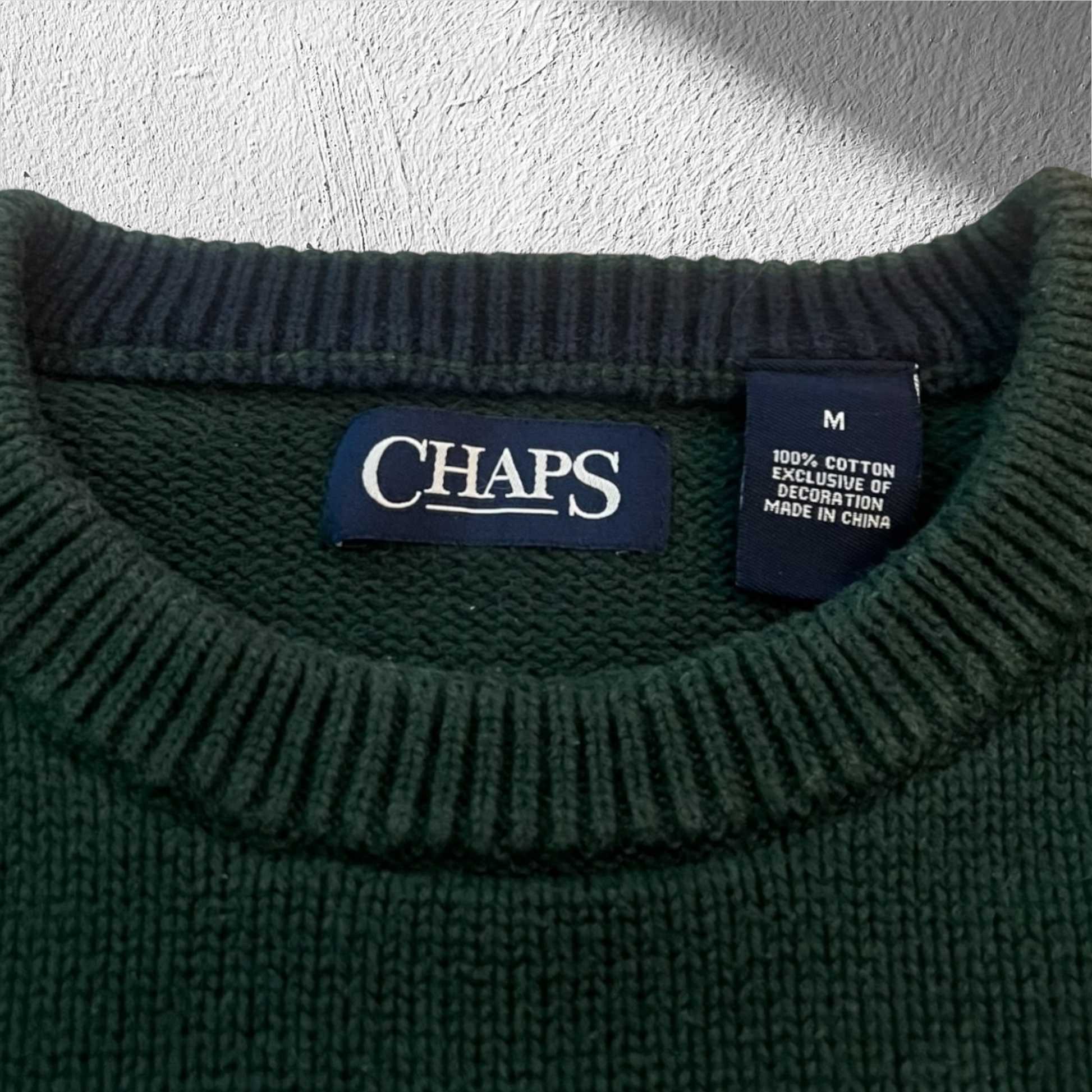 Vintage Chaps Ralph Lauren sweater, green cotton knit, preppy vintage pullover, classic Ralph Lauren knitwear, men’s medium sweater